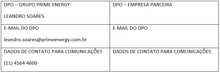 O Grupo Prime Energy submeterá para assinatura o Termo de Privacidade – LGPD (conforme minuta abaixo) para todos os seus Fornecedores e Parceiros que venham a ter acesso a esses dados para executarem os negócios jurídicos com as empresas do Grupo Prime Energy.