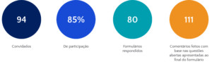 Com 85% de participação na pesquisa e muitos comentários comprometidos com uma avaliação profunda das práticas e diretrizes da nossa empresa, nossa equipe mostrou, mais uma vez, como estamos sempre dispostos a buscar melhorias e a entregar o melhor em todos os projetos com os quais nos envolvemos.
